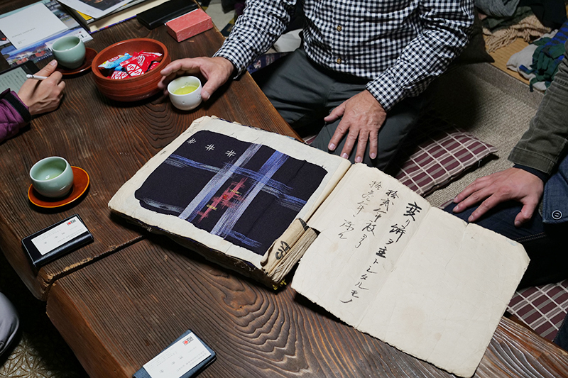 「25年前にニューヨークの展示会に出したとき、いろんな人種の人がいる場所だからいろんな織物を持ってきてと言われたんです。その多様性を見て、何でも織ってみようかなと思うようになりました」。澤井織物工場4代目 澤井伸さんは、伝統的工芸品「多摩織」の担い手でもある。多摩織は八王子市とあきる野市で生産される「お召・紬・風通織・変わり綴・綟(もじ)り織」という5種の織物で、その製造方法にも細かな条件が指定されている。代々受け継がれた見本帳には絣や紬の美しい裂があった。「着尺を織っていたんだ」。現在の多種多様な製品群に圧倒されていたひらく織メンバーだが、そのルーツは和装にあるということを見せてもらった。一歩一歩の積み重ねが、機場を進化させたのだ。